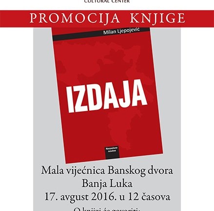 У Вијећници Банског двора 17. августа 2016. године (сриједа) у 12,00 часова биће промовисана књига "ИЗДАЈА" аутора Милана Љепојевића,