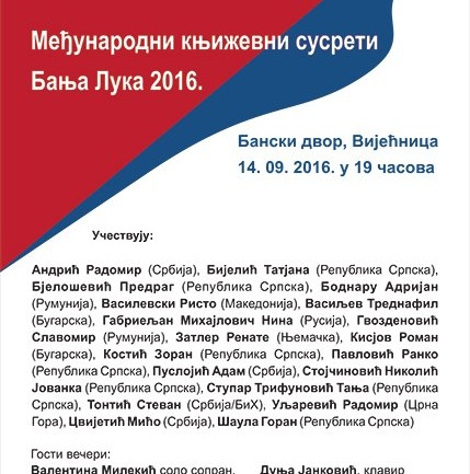 У Вијећници Банског двора 14. септембра 2016. године (сриједа) у 19,00 часова одржаће се Међународни књижевни сусрети Бања Лука 2016.
