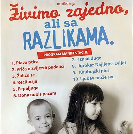 У Концертној дворани Банског двора 21. марта 2016. године (понедељак) у 13,00 часова биће одржана Манифестација – „Живимо заједно, али са разликама“ поводом Међународног дана особа са Dоwn синдромом, У сарадњи да Дјечијим едукативним центром „Свјетлице“. ПРОГРАМ Плава птица Представиће  се дјеца и млади са Down синдромом, те њихови другари…
