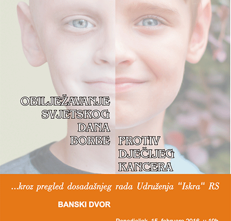 У Вијећници Банског двора 15. фебруара 2016. године (понедељак) у 19,00 часова одржаће се промоција „Првог билтена Удружења родитеља дјеце обољеле од малигних болести Искра“, биће презентован и рад Удружења родитеља дјеце обољеле од малигних болести „Искра РС“ Бања Лука, као и изложба фотографија насталих…