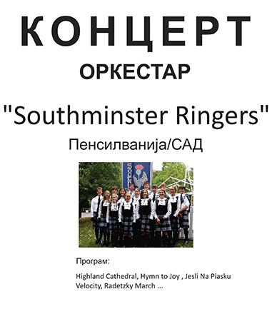 У Концертној дворани Банског двора 28. јуна 2014. године (субота) у 20,00 часова одржаће се концерт - Оркестар „Southminster Ringers“, (Pensilvanija/SAD).