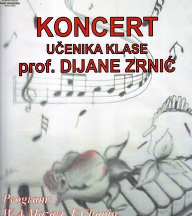 У Вијећници Банског двора 25. марта 2013. године (понедјељак) у 19,00 часова одржаће се концерт ученика Музичке школе "Владо Милошевић" класе проф. Дијане Зрнић, одсјек клавир.