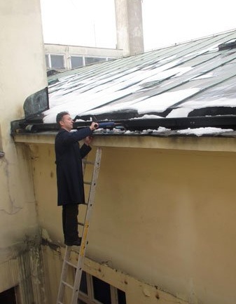 Радници Банског двора приликом радова на поправци крова Установе. (06. фебруар 2013. године)