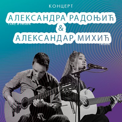 У Арт дворишту Банског двора 10. јуна (субота) 2023. године у 21.00 час одржаће ће се концерт АЛЕКСАНДРA РАДОЊИЋ (вокал и гитара) и АЛЕКСАНДАР МИХИЋА (гитара).