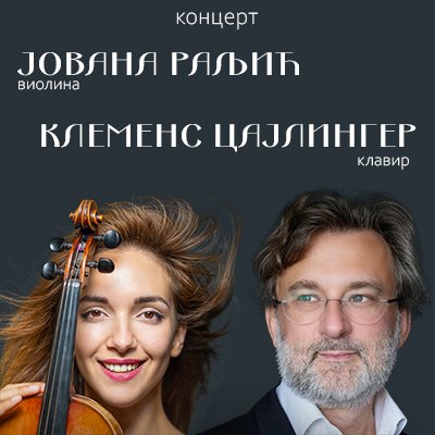 У Концертној дворани Банског двора 28.априла (четвртак) 2022. године у 20.00 часова одржаће се концерт ЈОВАНА РАЉИЋ (виолина) и КЛЕМЕНС ЦАЈЛИНГЕР (клавир). Бесплатне позивнице за концерт могу се преузети на билетарници Банског двора сваким даном, осим викендом у периоду од 12.00 до 18.00 часова.