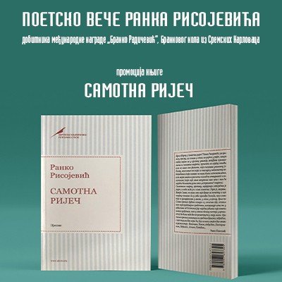 У Вијећници Банског двора 9.децембар (петак) 2022. године у 19.00 часова одржаће се ПОЕТСКО ВЕЧЕ РАНКА РИСОЈЕВИЋА – добитника међународне награде „Бранко Радичевић“, Бранковог кола из Сремских Карловаца и промоција књиге САМОТНА РИЈЕЧ.