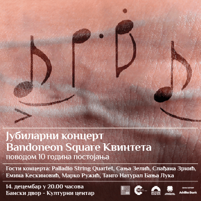 У Kонцертној дворани Банског двора 14. децембра (сриједа) 2022. године у 20.00 часова одржаће се концерт ансамбла BANDONEON SQUARE којим ће овај састав прославити значајан јубилеј – 10 година постојања.
