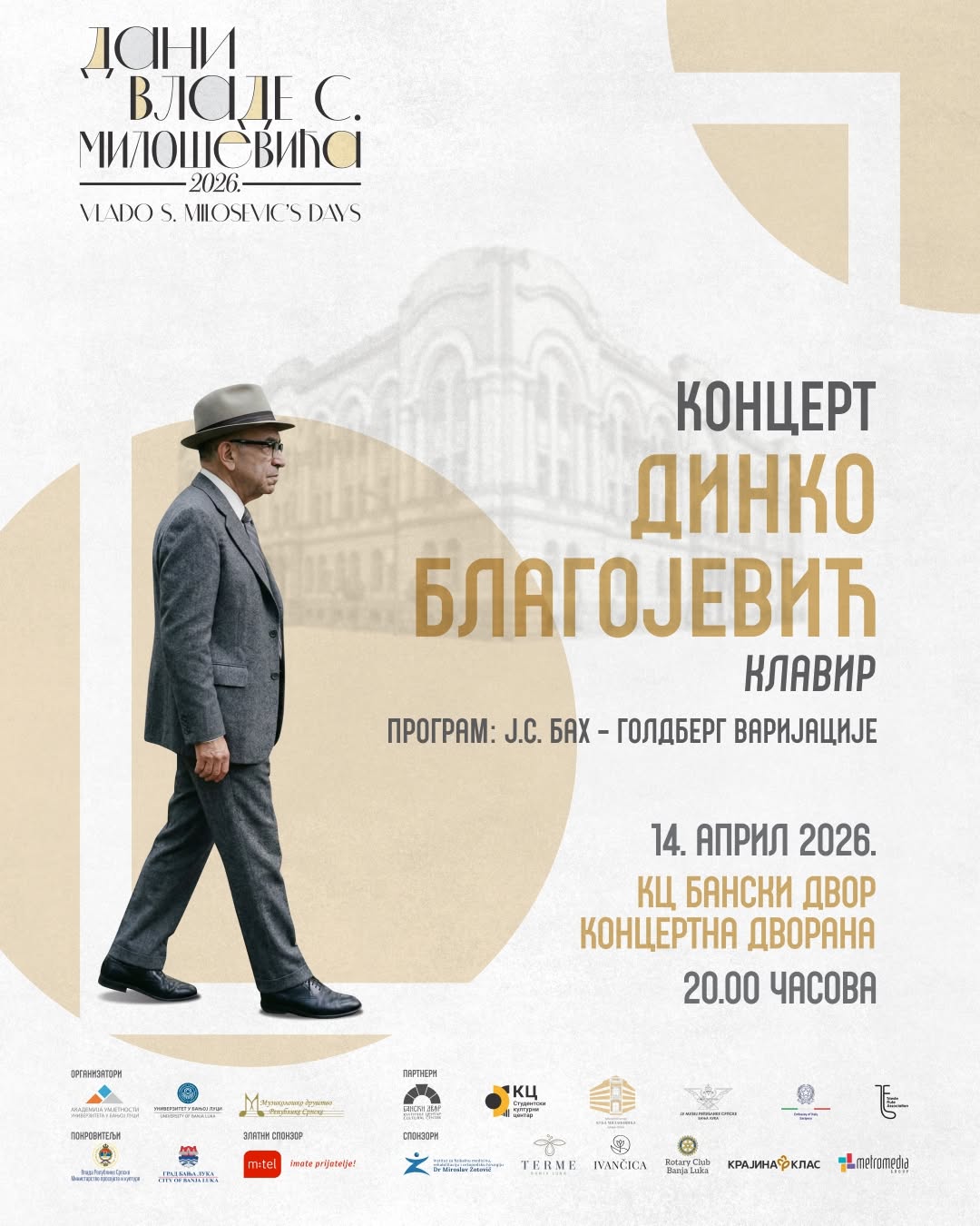 Програм: Ј.С. Бах - Голдберг варијације У оквиру манифестације Дани Владе С. Милошевића 2026, очекује вас вече посвећено младим умјетницима који својим радом и знањем помјерају границе. ✨ Концерт студената Академије умјетности УНИБЛ 🏆 Додјела плакета и признања најуспјешнијим студентима Вече које слави труд, креативност…