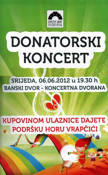 У Концертној дворани Банског двора 06.06.2012. године у 19,30 часова одржаће се донаторски Гала концерт Дјечијег хора „Врапчићи“.
