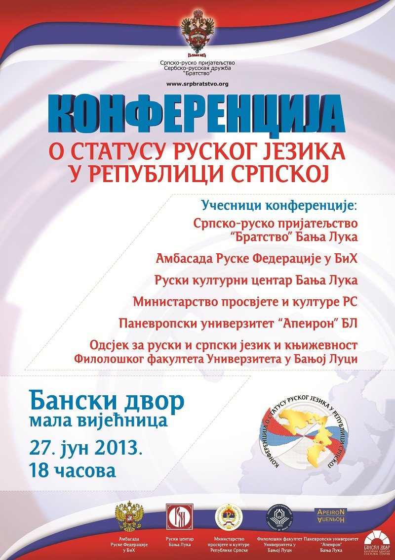 У Вијећници Банског двора 27. јуна 2013. године (четвртак) у 18,00 часова одржаће се Конференција и истраживање о статусу руског језика у Републици Српској а у сарадњи са Друштвом српско-руског пријатељства „Братство“ Бања Лука.