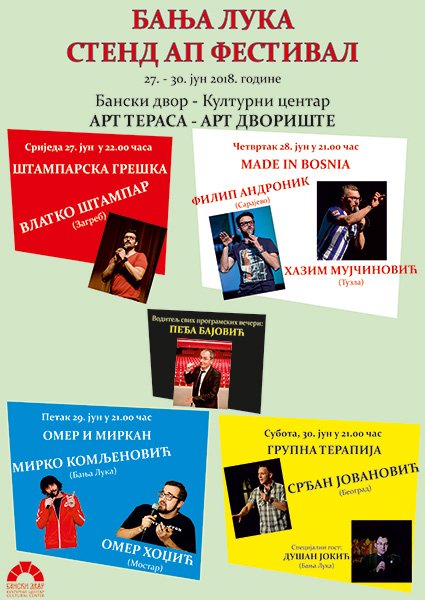 У Банском двору – Културном центру од 27. до 30. јуна 2018. године одржаће се први „БАЊА ЛУКА СТЕНД АП ФЕСТИВАЛ“.