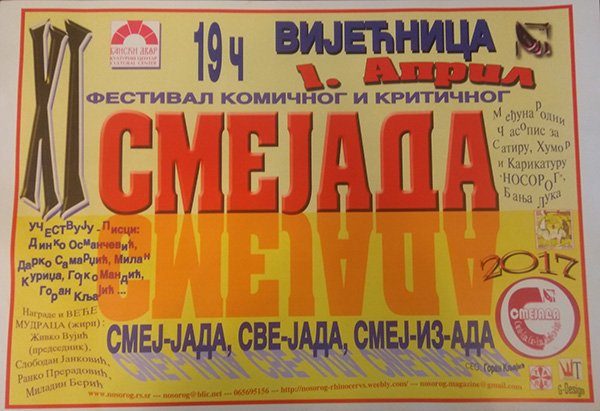 У Вијећници Банског двора 01. априла 2017. године (субота) у 19,00 часова одржаће се Фестивал комичног и сатиричног “Смејада“,