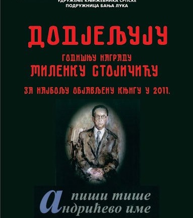У Вијећнци Банског двора 26.01.2012.године у 19,00 часова биће додјијељена награда Миленку Стојичићу за најбољу објављену књигу у 2011. години.