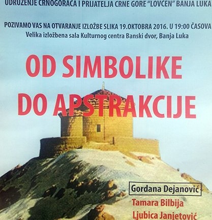 У Великом изложбеном салону Банског двора 19. октобра 2016. године (сриједа) у 19,00 часова отвориће се изложба под називом „Од симболике до апстракције“ посвећене сликарки Гордани Дејановић, У сарадњи са Удружењем Црногораца Републике Српске „Ловћен“,   Удружење Црногораца и пријатеља Црне Горе „Ловћен“ организовало је изложбу академских сликара…