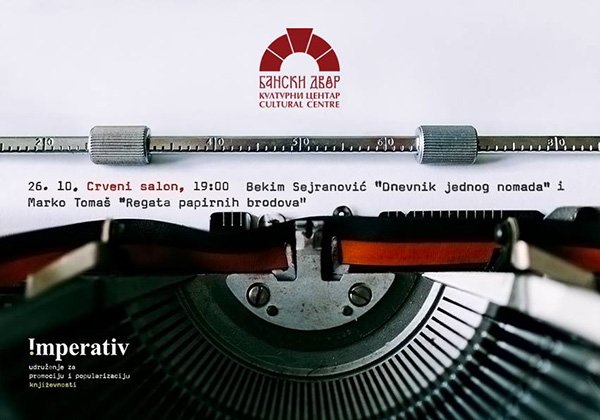 У Црвеном салону Банског двора 26. октобра 2017. године (четвртак) у 19.00 часова одржаће се промоција књига "Дневник једног номада", аутора Бекима Сејрановића и "Регата папирних бродова", аутора Марка Томаша. Учествују: Беким Сејрановић и Марко Томаш. У сарадњи са Удружењем за промоцију и популаризацију књижевности "Императив". Двострука промоција…