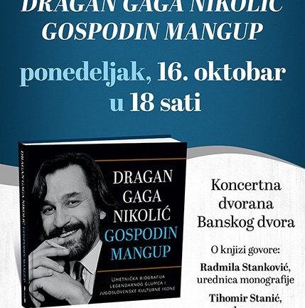 У Концертној дворани Банског двора 16. октобра 2017. године (понедјељак) у 18.00 часова биће промовисана монографија Драган Гага Николић „Господин мангуп“. Учествују: Радмила Станковић - уредница монографије и Тихомир Станић - глумац. ДРАГАН ГАГА НИКОЛИЋ - ГОСПОДИН МАНГУП Приредила Радмила Станковић ______________________________________________________________ Укратко о књизи Уметничка биографија легендарног глумца…