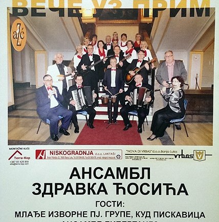 У Вијећници Банског двора 04. априла 2016. године (понедјељак) у 19,00 часова, одржаће се концерт - Ансамбл Здравка Ћосића „Вече уз Прим“,