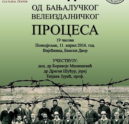 У Вијећници Банског двора 11. априла 2016. године (понедељак) у 19,00 часова биће одржана Јавна трибина под називом “100 година од бањалучког велеиздајничког процеса“,