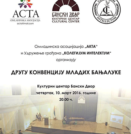 У Концертној дворани Банског двора 10. марта 2016. године (четвртак) у 20,00 часова одржаће се друга конвенција младих Бањалуке,