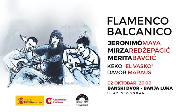 У Концертној дворани Банског двора 02. октобра 2017. године (понедјељак) у 20.00 часова одржаће се концерт Jeronima Maye под назиовм „Flamenco Balcanico“. Jeronimo Maya, врхунски фламенко гитариста из Мадрида потиче из породице са традицијом свирања фламенка дугом око 100 година. Овај умјетник је праунук чувеног Ramona Montoye, гитаристе који…