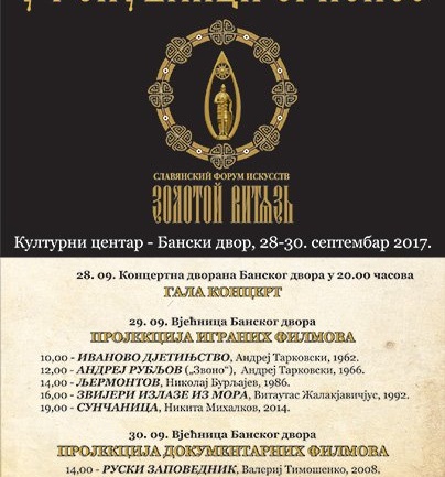 У четвртак 28. септембра 2017. године с почетком од 20.00 часова, у Концертној дворани Банског двора биће одржан ГАЛА КОНЦЕРТ истакнутих руских умјетника који ће се представити са избором музичког програма реномираног филмског фестивала „Златни витез“ из Москве. Гала концертом ће бити отворен тродневевни фестивал…