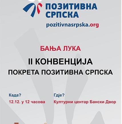 У Концертној дворани Банског двора 12. децембра 2015. године (субота) у 12,00 часова одржаће се II Конвенција “Покрет Позитивна Српска“. На овој конференцији, бројним гостима који ће у Бања Луку допутовати из свих градова РС и региона, представиће се руководство Покрета Позитивна Српска који ће свим званицама представити…