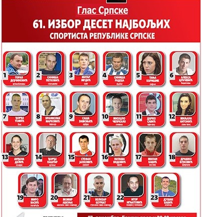 У Концертној дворани Банског двора 17. децембра 2015. године (четвртак) у 20,00 часова одржаће се „61. Избор најбољег спортисте Републике Српске за 2015.годину“, У сарадњи са Гласом Српске. Уз проглашење десет најбољих биће уручене остале награде и признања, а то су повеља за изузетан спортски подухват године, плакете…