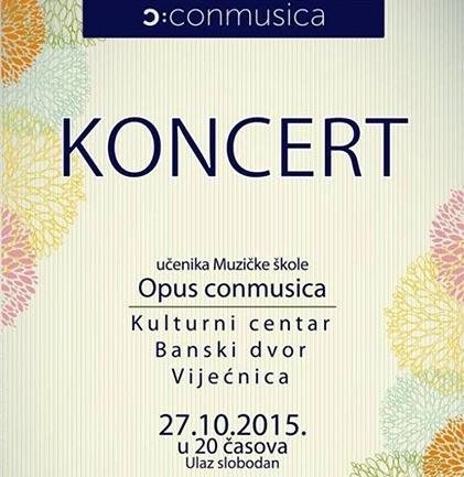 У Вијећници Банског двора 27. октобра 2015. године (уторак) у 20,00 часова, одржаће се концерт ученика - „Opus Conmusica“.