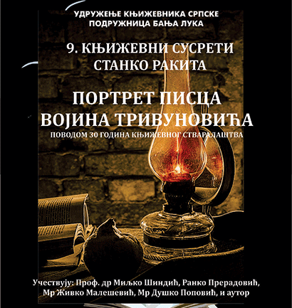 У Вијећници Банског двора 22. октобра 2014. године (сриједа) у 19,00 часова, одржаће се књижевно вече посвећено 30-годишњице стваралаштва писца Војина Тривуновића. Учествују: Миљко Шиндић, Живко Малешевић, Душко Поповић и аутор, у сарадњи са Удружењем књижевника Републике Српске, Подружница Бања Лука. Биографија Војин Тривуновић рођен је у…