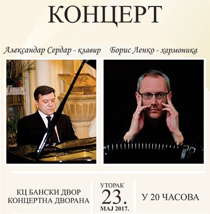 У Концертној дворани Банског двора 23. маја 2017. године (уторак) у 20,00 часова у оквиру Фестивала музичких школа "Љепота класике 2017" одржаће се концерт предавача - Александар Сердар, клавир (Београд) и Борис Ленко, хармоника (Братислава).