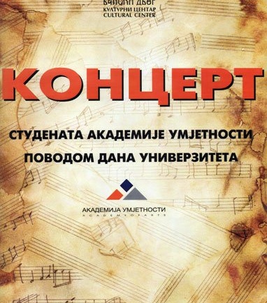 У Концертној дворани Банског двора 30. новембра 2012. године (петак) у 20,00 часова одржаће се концерт студената Академије умјетности Бања Лука поводом дана Универзитета.