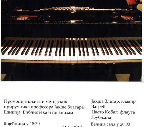 У Вијећници Банског двора 24. новембра 2012. (субота) у 18,30 часова одржаће се промоција књига и методичних приручника проф. Јакше Златара (клавир) у едицији "Библиотека и пијанизам".