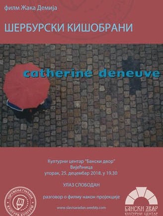 У Вијећници Банског двора 25. децембра 2018. године (уторак) у 19.30 часова одржаће се пројекција филма "ШЕРБУРСКИ КИШОБРАНИ", француског режисера Жака Демија.