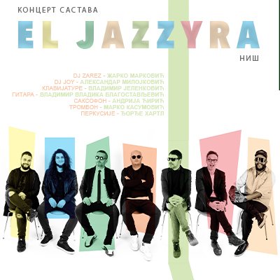У Арт дворишту Банског двора 15.јула (субота) 2023. године одржаће се концерт нишког састава EL JAZZYRА/ЕЛ ЏЕЗИРА. Бесплатне позивнице могу се преузети на билетарници Банског двора од петка 7. јула у периоду од 12.00 до 18.00 часова, сваким радним даном осим викендом. Овај састав чине: DJ…