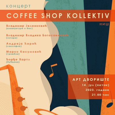 У Арт дворишту Банског двора 14. јула (петак) 2023. године у 21.00 час одржаће се концерт COFFEE SHOP KOLEKTIVА/КОФИ ШОП КОЛЕКТИВА из Ниша. Бесплатне позивнице могу се преузети на билетарници Банског двора од четвртка 6. јула у периоду од 12.00 до 18.00 часова, сваким радним…