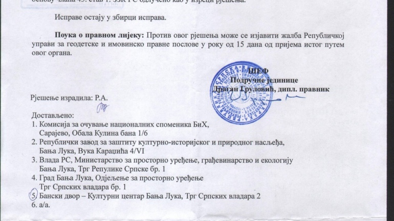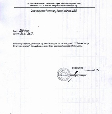 ЈУ "Бански двор - Културни центар" објављује тендерску документацију за набавку услуге физичког обезбјеђења Камене зграде и Љетне позорнице у тврђави Кастел за потребе ЈУ "Бански двор - Културни центар" Бања Лука.