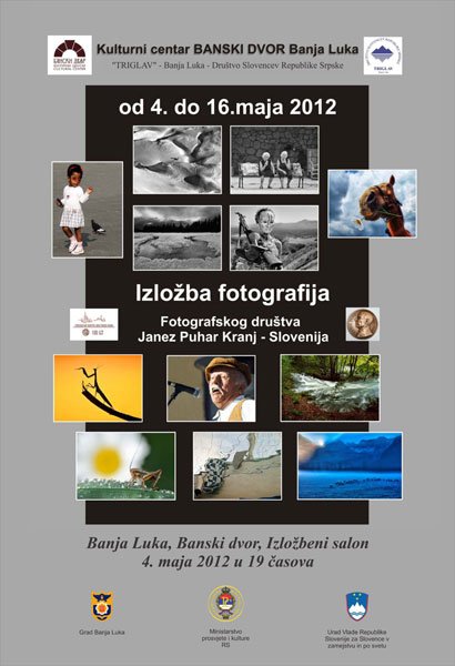 Изложба фотографија Фотографског друштва „Јанез Пухар“ АРХИВА03/05/2012 У Малом изложбеном салону 04.05.2012. године у 19,00 часова одржаће се отварање изложбе Фотографског друштва „Јанез Пухар“ Крањ. katalog fotografska izložba Janez Puhar Kranj