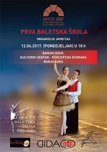У Концертној дворани Банског двора 12. јуна 2017. године (понедељак) у 18,00 часова одржаће се Јавни час образовно – васпитне установе „Прва балетска школа“,