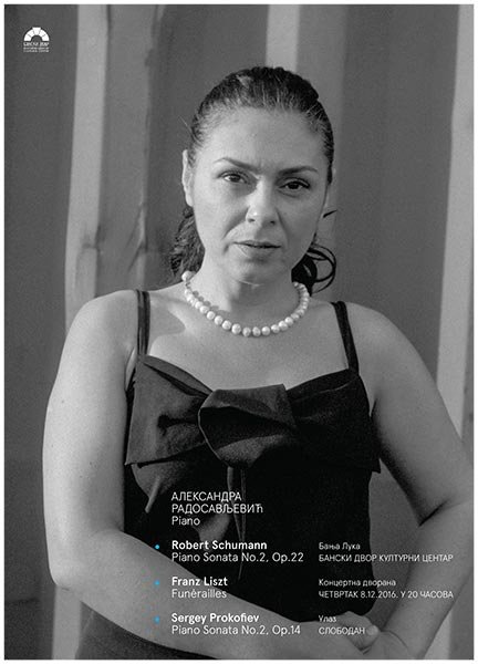 У Концертној дворани Банског двора 08. децембра 2016. године (четвртак) у 20,00 часова одржаће се концерт – Александра Радосављевић, клавир.