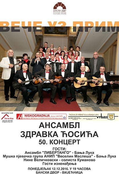 У Вијећници Банског двора 12. децембра 2016. године (понедељак) у 19,00 часова одржаће се концерт – Ансамбл Здравка Ћосића “Вече уз Прим“,