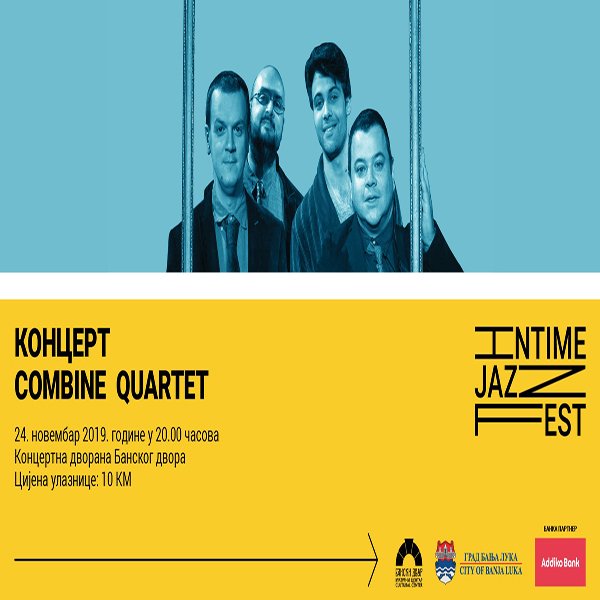 У Kонцертној дворани Банског двора 24. новембра 2019. године (недјеља) у 20.00 часова у оквиру другог фестивала џез музике INTIME JAZZ FEST, одржаће се концерт бањалучког џез састава КОМБАЈН КВАРТЕТ.