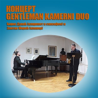 У Концертној дворани Банског двора 29. јула (сриједа) 2020. године у 21:00 час одржаће се концерт GENTLEMEN KAMERNI DUO – БОРИС ДУКИЋ (кларинет и саксофон) и ЗЛАТАН МИРИЋ (клавир).