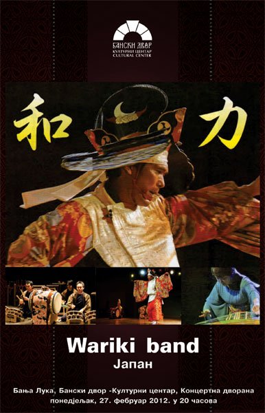 У Концертној дворани Банског двора дана 27.02.2012.године у 20,00 часова одржаће се концерт групе “ Wariki band “ из Јапана.