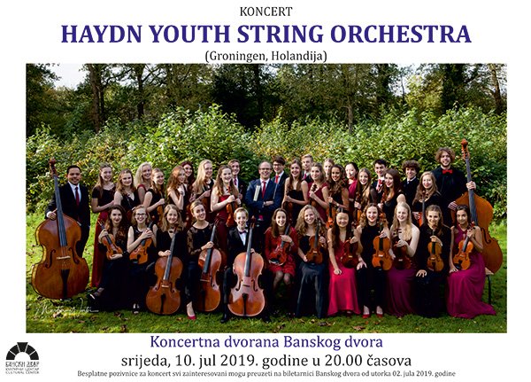 У Концертној дворани Банског двора 10. јула 2019. године (сриједа) у 20.00 часова одржаће се концерт HAYDN YOUTH STRING ORCHESTRA (Гронинген, Холандија).