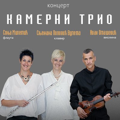 У Концертној дворани Банског двора 4. новембра (петак) 2022. године у 20.00 часова одржаће се концерт КАМЕРНИ ТРИО: СОЊА МИЛЕТИЋ (флаута) СЊЕЖАНА ПОПОВИЋ ВУЛЕТА (клавир) и ИВАН ОТАШЕВИЋ (виолина).