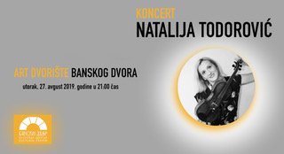 У Арт дворишту Банског двора 27. августа 2019. године (уторак) у 21.00 час одржаће се концерт виолинисткиње Наталије Тодоровић уз клавирску пратњу Владе Данића.