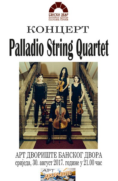 У Арт дворишту Банског двора 30. августа 2017. године (сриједа) у 21.00 час одржаће се концерт „PALLADIO STRING QUARTET“.