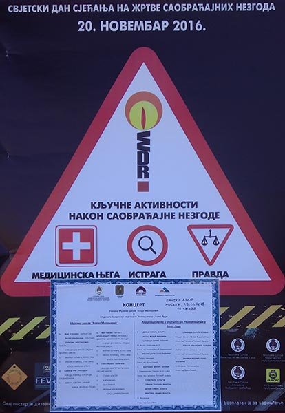 У Вијећници Банског двора 19. новембра 2016. године (субота) у 19,00 часова одржаће се концерт поводом „Свјетског дана сјећања на жртве настрадале у саобраћају“,