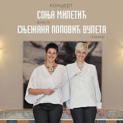 У Концертној дворани Банског двора 4. октобра (уторак) 2022. године у 20.00 часова одржаће се концерт СОЊА МИЛЕТИЋ (флаута) и СЊЕЖАНА ПОПОВИЋ ВУЛЕТА (клавир).