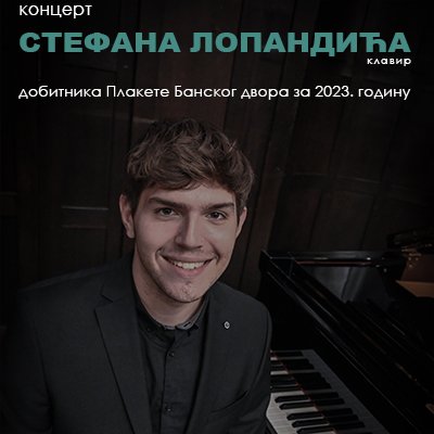 у 20.00 часова одржаће се концерт СТЕФАНА ЛОПАНДИЋА (клавир) добитника Плакете Банског двора за најбољег студента Студијског програма музичке умјетности Академије умјетности Универзитета у Бањој Луци у класи професора Дејана Јанковића.